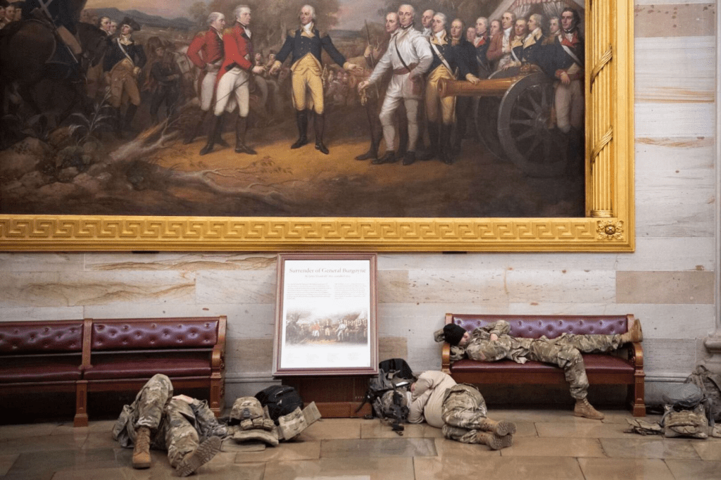 TROOPS TO PROTECT THE NATIONS CAPITOL TOLD TO SLEEP IN THE COLD AND IN PARKING GARAGES